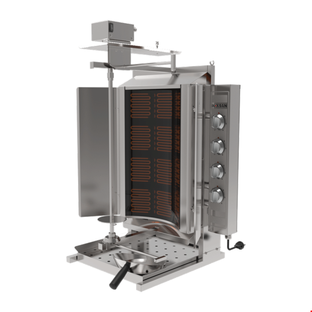 يوجد مقبس كهربائي مدمج في الجهاز للسكين الكهربائي. الوضع المائل للسيخ الذي يُلف عليه لحم الدونر يوفر مسافة ثابتة بين اللحم والسخان.